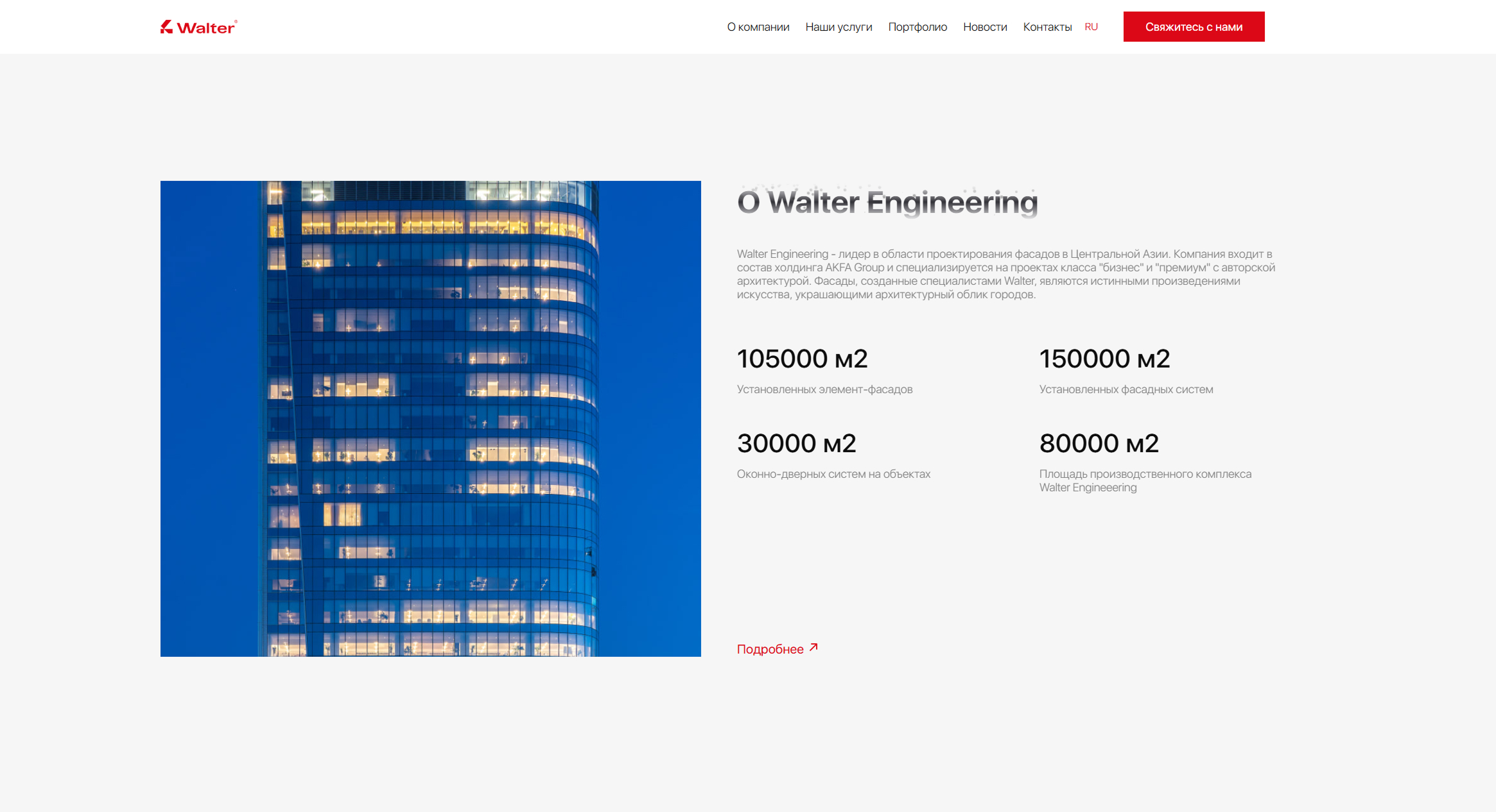Walter Engineering is a leader in facade design in Central Asia. The company is part of the AKFA Group holding and specializes in business and premium class projects with original architecture.